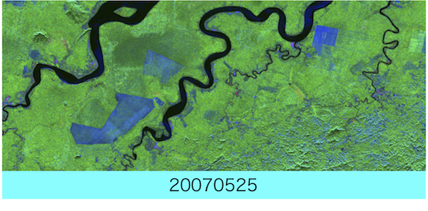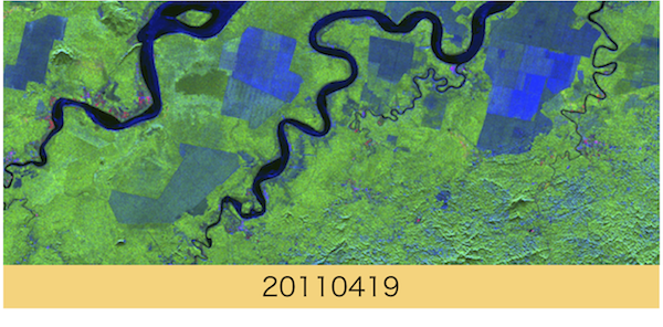 青:表面散乱(主に裸地),緑:体積散乱(主に森林)