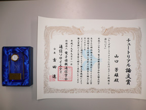 山口先生が電子情報通信学会チュートリアル論文賞を受賞しました.