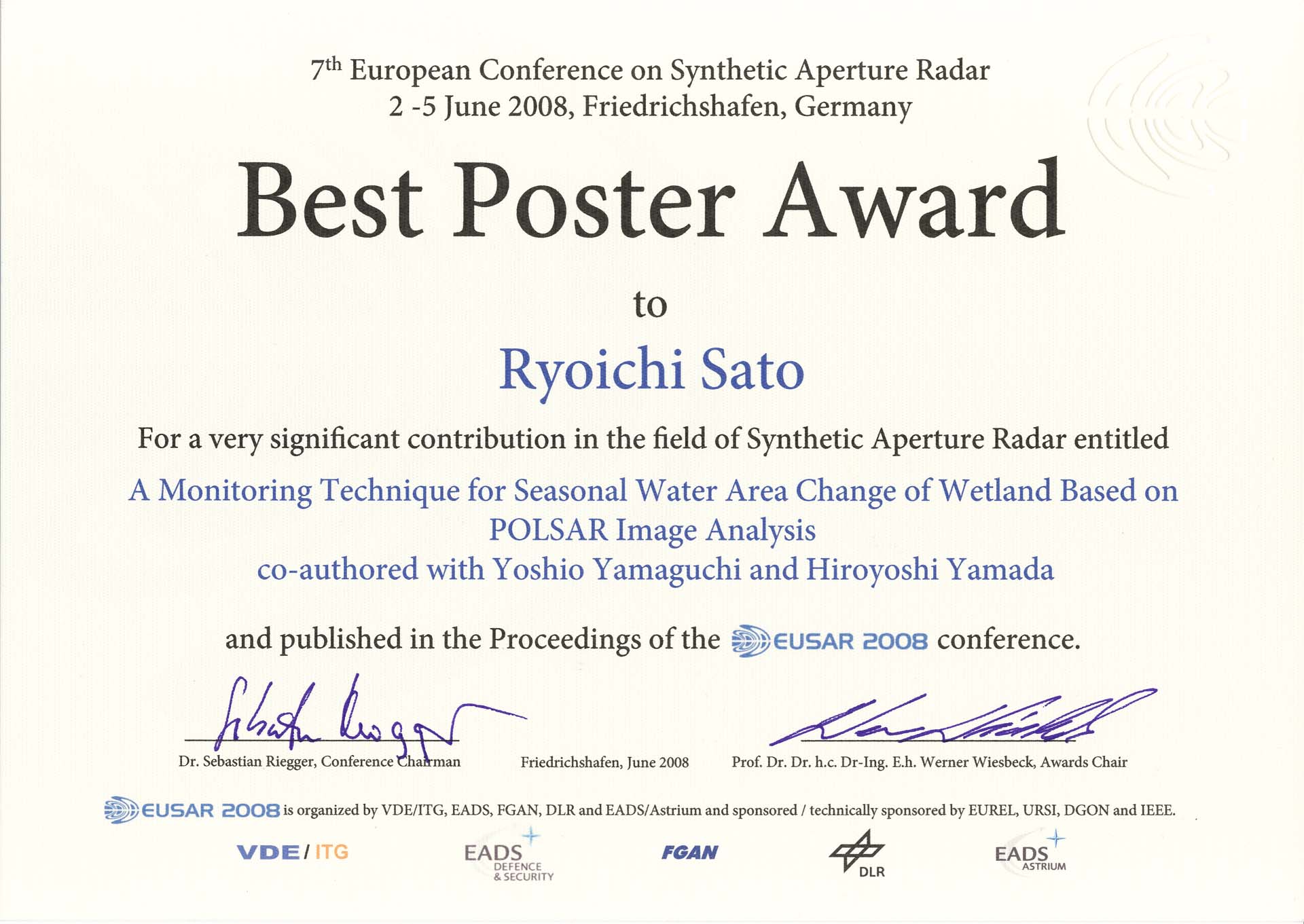 佐藤亮一先生がEUSAR2008でBest Poster awardを受賞しました.
